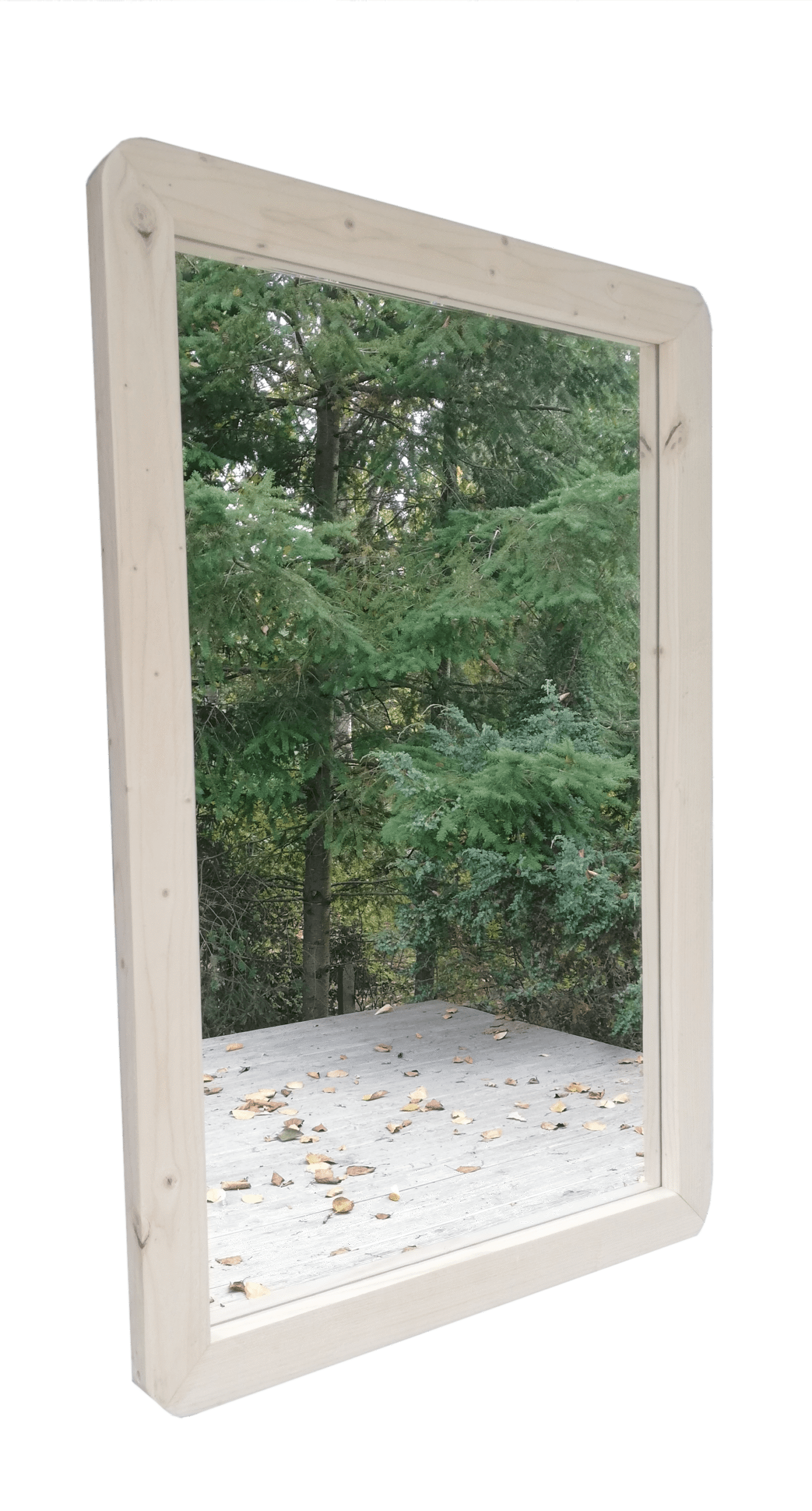 Lustro w drewnianej ramie na wymiar – naturalne drewno to propozycja dla osób, które cenią autentyczność materiału i ponadczasową prostotę. Rama wykonywana jest ręcznie z litego drewna i przygotowywana na indywidualny wymiar – zarówno pod względem rozmiaru, jak i szerokości listwy.